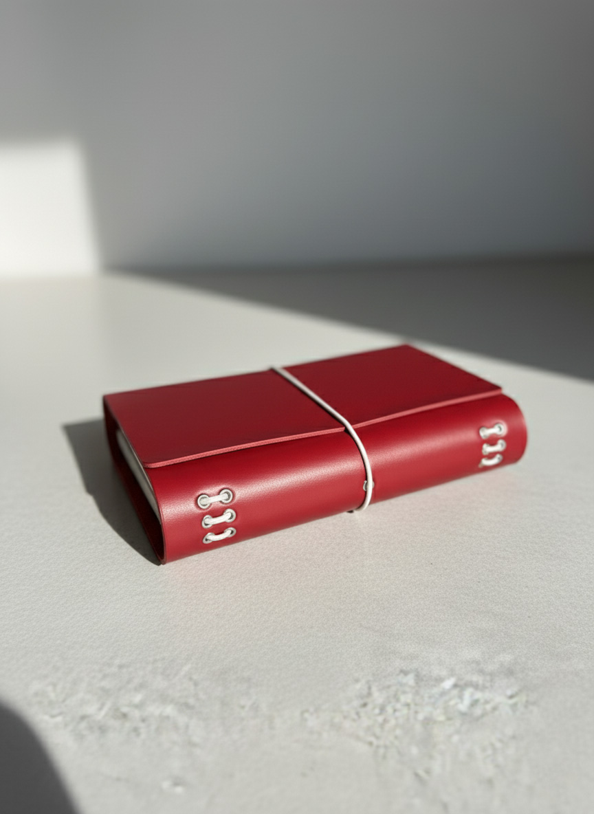 Cada pieza se concibe y elabora completamente hecha a mano, garantizando una calidad inigualable en el cuero y en la confección de cada lomo. En un mundo digital, ofrecemos el placer táctil de un auténtico cuaderno de cuero, ligero y elegante, pensado para tu ritmo.