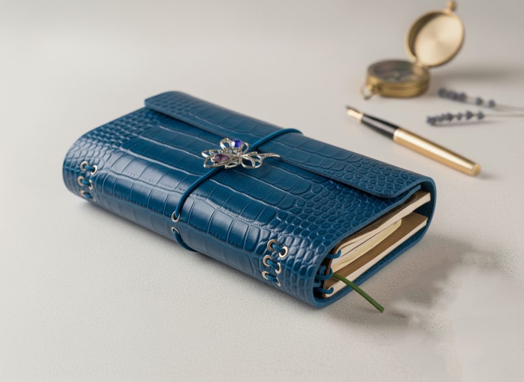 Todos nuestros cuadernos son altamente personalizables. Puede elegir el color de la piel, el tipo de cierre, el número de recambios, los accesorios interiores y exteriores, e incluso añadir detalles decorativos como colgantes metálicos o elásticos en diferentes tonos. Cada cuaderno se convierte así en una pieza única, diseñada a su gusto y preparada para adaptarse a su ritmo de vida.